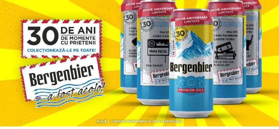 Pentru a marca acest moment, Bergenbier lansează o serie limitată de doze de colecție, de 0,5L, ilustrând momente și simboluri reprezentative din acești 30 de ani.