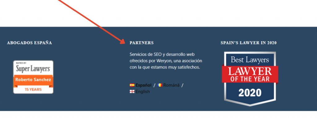 Suntem una dintre vechile companii din România care care în tot acest timp de la înființare până la momentul de față a legat parteneriate pe întreaga suprafață a pământului. Ne mândrim cu partenerii noștri care la rândul lor vând servicii de Hosting in Marea Britanie, unde clienții Weryon au discount 25% de la Devon Webs. Ne aduce bucurie proiectul de a castiga locul unu în Google pentru echipa de avocați penali din elita spaniolă care în urma serviciilor noastre au devenit faimoșii avocați penali din Spania. Salutăm totodată noul nostru partener din Chile furnizor de asemenea de servicii de hosting, și nu în cele din urmă și cu această oportunitate mulțumim și celor trei agenții de brokeri de trafic din SUA cu care lucrăm și evoluăm productiv de la an la an de mai bine de 7 ani.