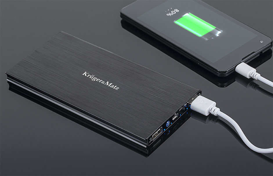 3. Baterie externa 7600 mAh Kruger&Matz metalica. Pentru cei care tin la design si apreciaza liniile fine si textura unui dispozitiv, acest acumulator portabil este alegerea ideala. Dimensiunile reduse, greutatea foarte mica si aspectul elegant recomanda aceasta baterie atat in mediul business, cat si ca un cadou inspirat.